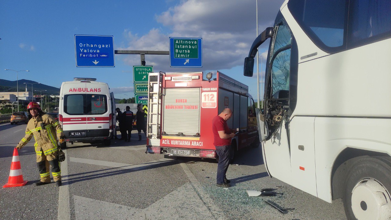 Yalova-Bursa Karayolu, Orhangazi Karsak Kavşağında  içerisinde 38 yolcunun bulunduğu bir yolcu otobüsü kavşakta önünde seyir halinde olan bir tıra arkadan çarptı. Meydana gelen kaza da otobüs şoförü araç içinde sıkıştı.